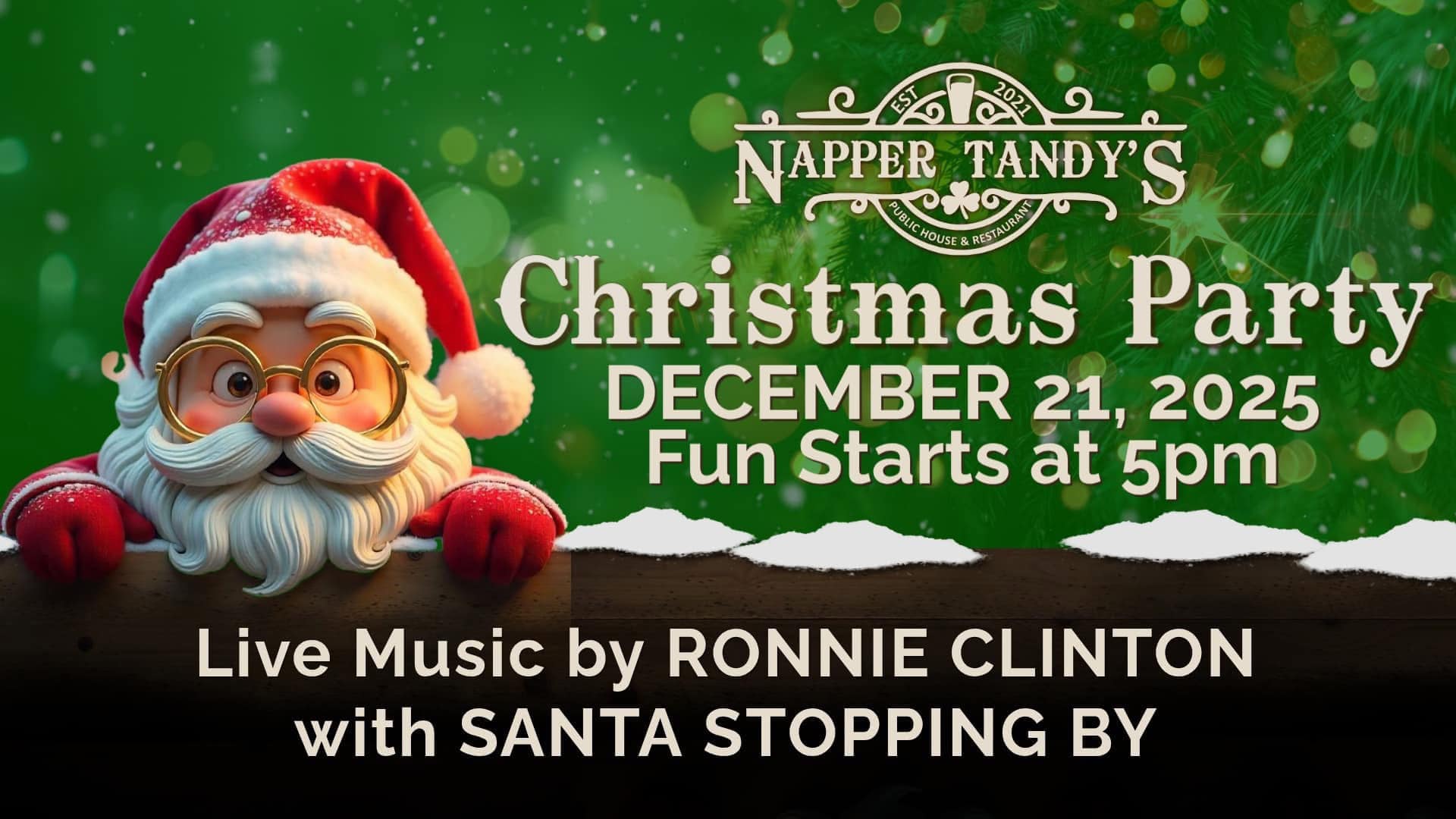 December 21, 2025 @ 5:00 pm - 11:30 pm Napper Tandy’s Christmas Party Napper Tandy's Public House and Restaurant 27 South Broad Street East, Angier, NC, United States