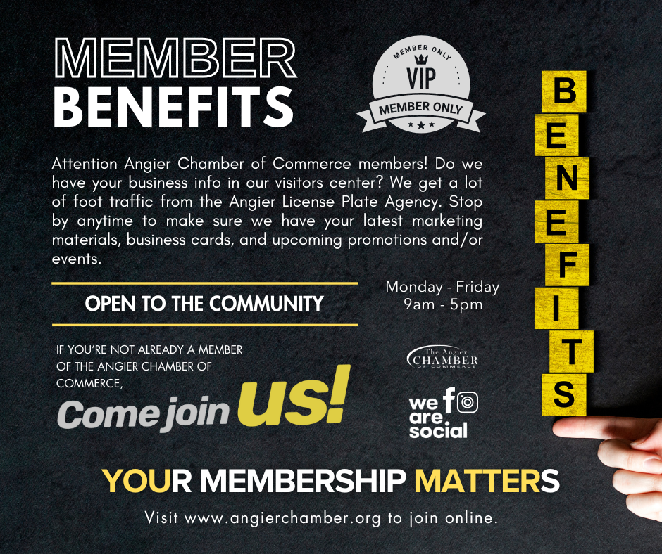 Attention Angier Chamber of Commerce members! Do we have your business info in our visitors center? We get a lot of foot traffic from the Angier License Plate Agency. Stop by anytime to make sure we have your latest marketing materials, business cards, and upcoming promotions and/or events.