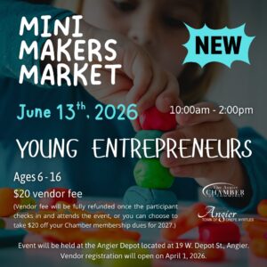 The Angier Chamber of Commerce and the Town of Angier are excited to host a Mini Makers Market on Saturday, June 13, 2026, from 10:00 a.m. – 2:00 p.m.