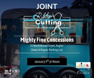 Join us in the Town of Angier parking lot for a joint ribbon cutting with the Coats Area Chamber of Commerce as we celebrate with Mighty Fine Concessions – a local mobile food truck bringing the flavor!